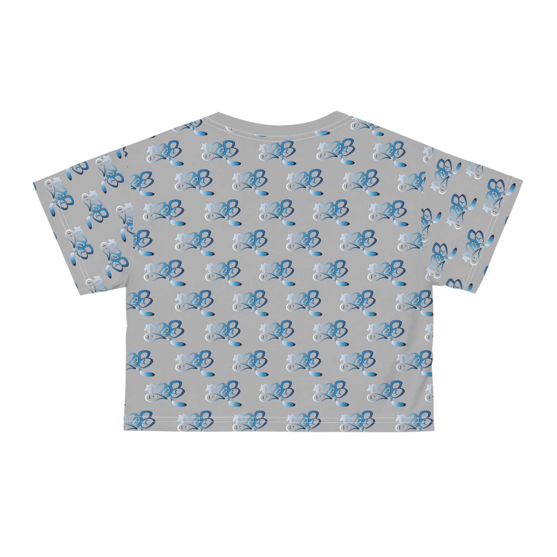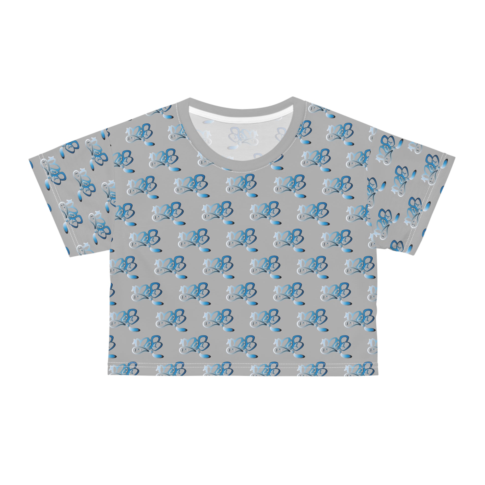 Blue Butterfly AOP Crop Tee | Cute Summer Top, Trendy Fashion Shirt, Gift for Her, Boho Chic Style, Casual Wear