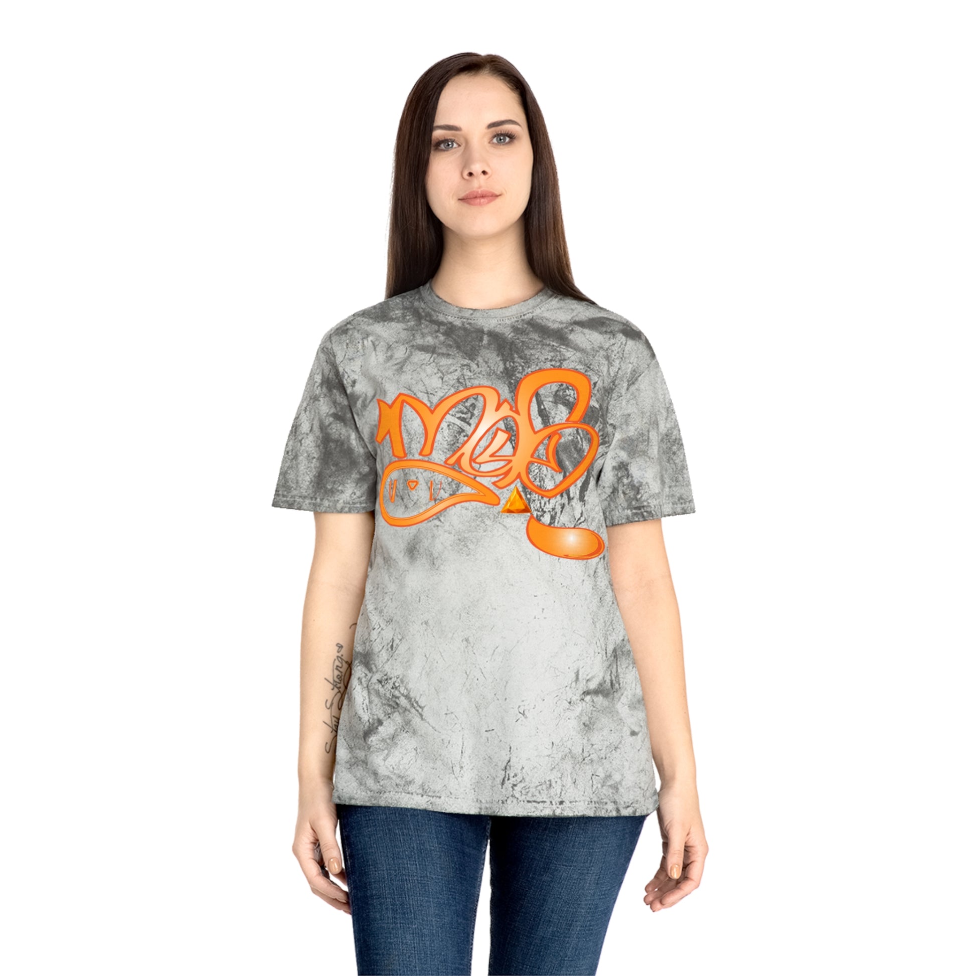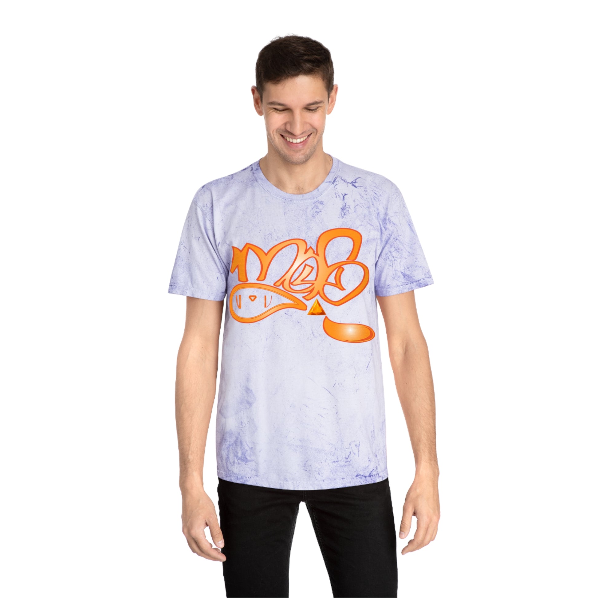 This relaxed-fit tee feels like sunshine in fabric — washed, worn-in, and alive with color. The garment-dyed Color Blast process gives each shirt a one-of-a-kind marbled finish in warm, golden tones that catch the eye without shouting. A soft, medium-weight 100% ring-spun cotton holds vivid screen printing and drapes comfortably over the body. The front artwork — a bold, graffiti-inspired script in glossy orange with subtle highlights — adds personality and streetwise flair. Layer it under an open flannel for cool evenings, wear it solo while wandering markets, or let it be the laid-back statement piece at a casual hangout. Every shirt arrives with its own unique dye pattern, so what you wear feels personal and lived-in from day one.