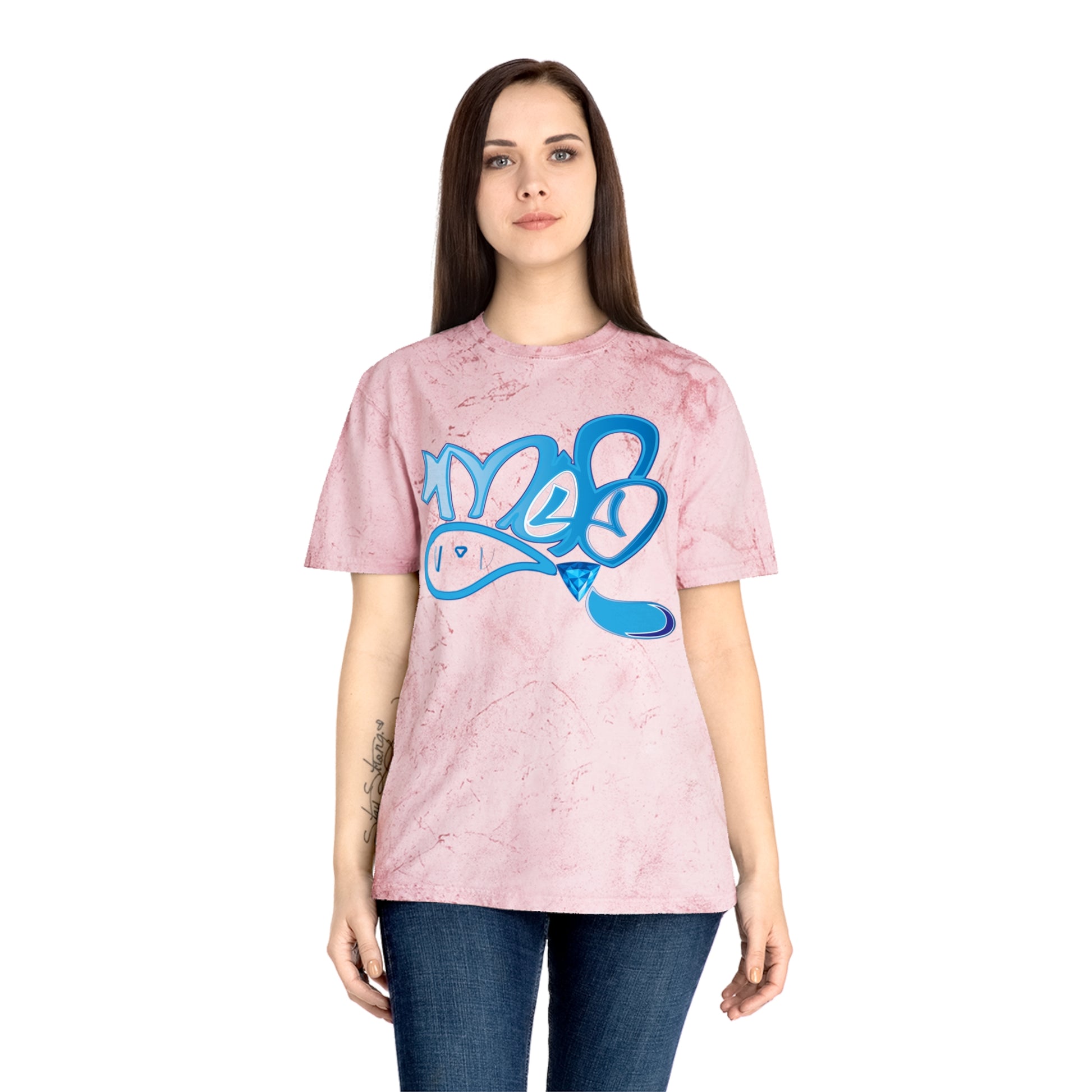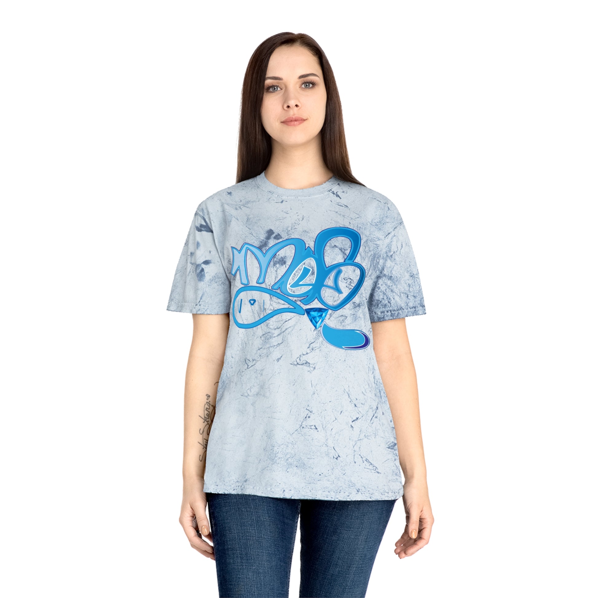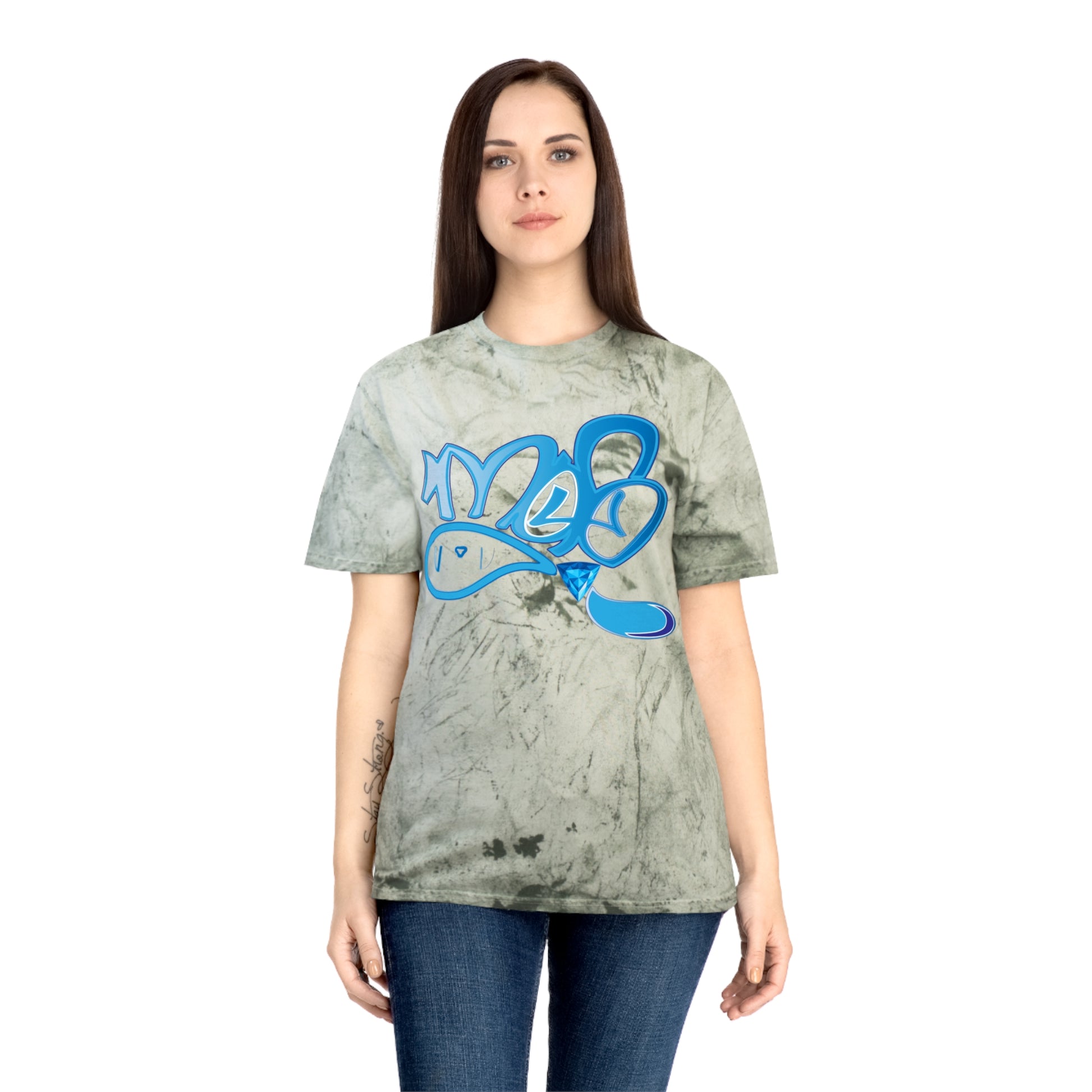 This laid-back tee carries the energy of street art and sun-washed afternoons. The pigment-dyed Color Blast fabric creates a lived-in, marbled backdrop that makes every shirt one-of-a-kind. A bold, graffiti-style blue graphic pops against warm, sandy tones — like a tag on a sunlit wall. Wear it while wandering the city, hanging with friends, or layering under a jacket for weekend adventures. The relaxed fit and soft ring-spun cotton feel like an easygoing companion you reach for again and again.