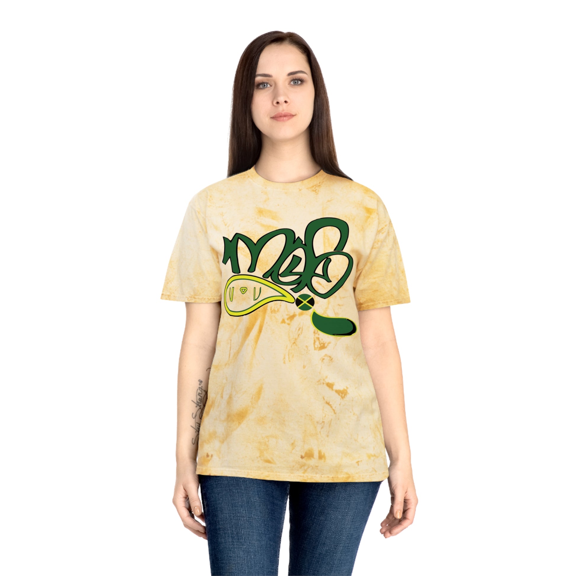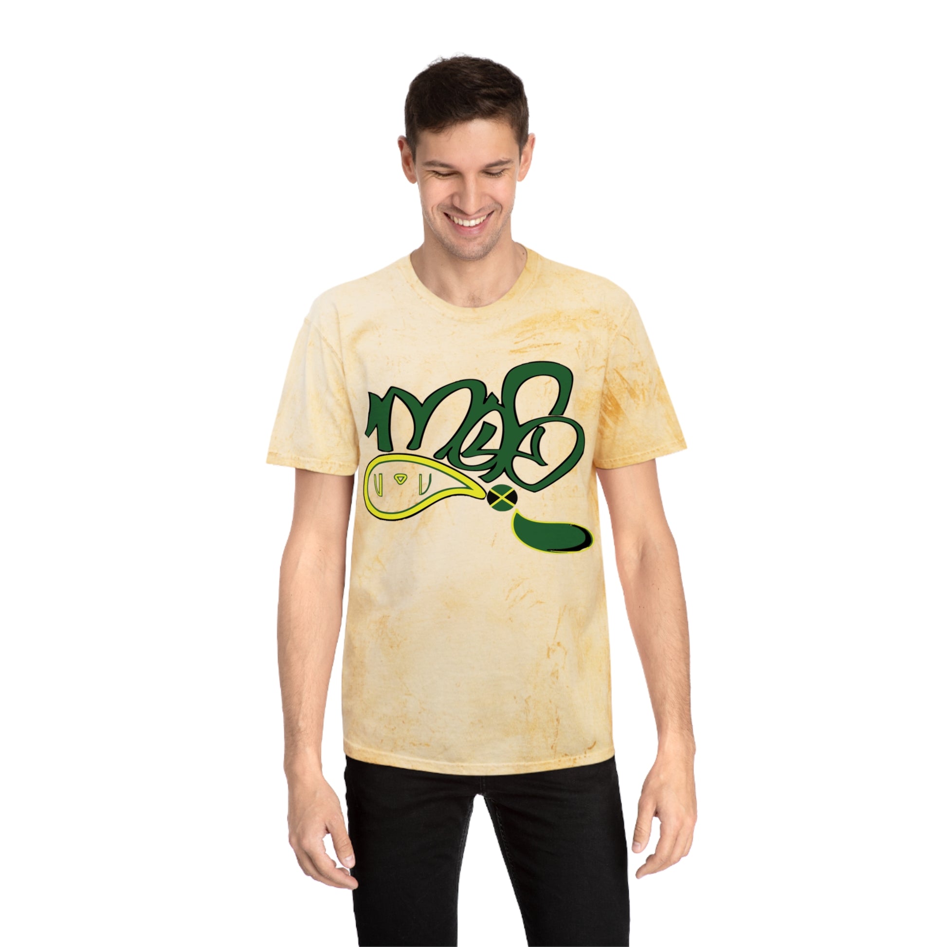 This relaxed-fit tee brings warm, lived-in vibes to everyday wear. The garment-dyed “color blast” fabric creates a mottled, sun-bleached background that feels vintage and organic. A bold, hand-lettered-style graphic in deep greens and chartreuse floats on the chest, giving the shirt a streetwise, artsy energy—like a favorite canvas you can wear out. Soft ring-spun cotton and thoughtful construction keep it comfortable and durable: it drapes easily over layers, moves with you on long walks, and holds up wash after wash while developing more character over time. Wear it to small music nights, studio sessions, or lazy weekend coffee runs when you want to feel grounded and seen without trying too hard.