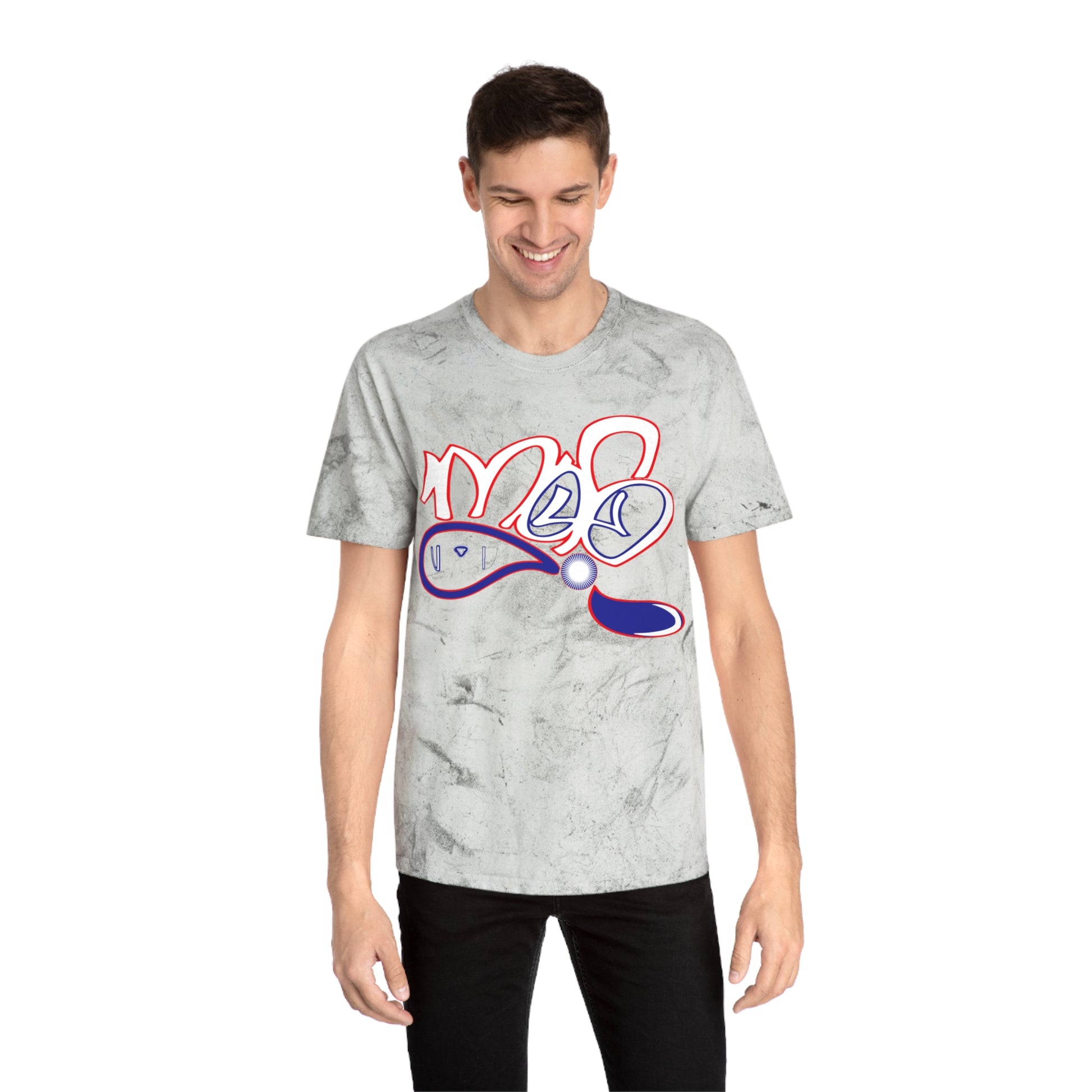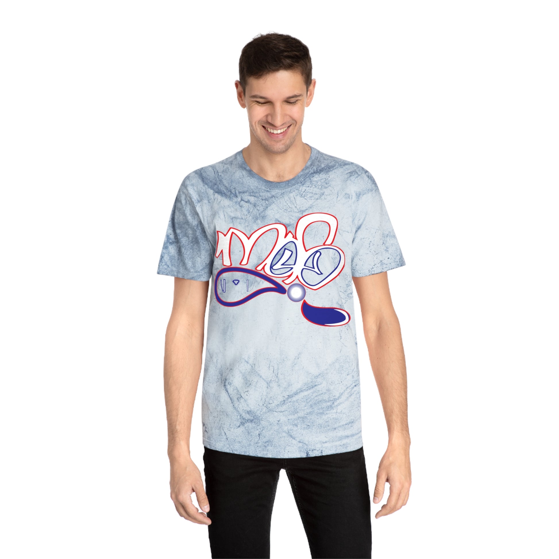 This relaxed-fit tee feels like a wearable sketchbook — soft, lived-in, and full of personality. The garment-dyed Color Blast base gives each shirt a cloudy, marble-like wash with subtle texture and tonal variation, so every piece looks uniquely worn and expressive. At the chest, a playful, graffiti-inspired graphic pops in soft pinks and purples, blending hand-drawn curves with a glossy, sticker-like finish. It layers effortlessly under an overshirt or stands on its own with high-waist jeans for a casual, art-forward look. Wear it when you want something that reads creative and comfortable: studio days, city walks, or relaxed meetups with friends. The thoughtful construction — ring-spun cotton, neck tape, and double-stitched seams — keeps this tee feeling sturdy without losing that broken-in softness that invites repeat wear.