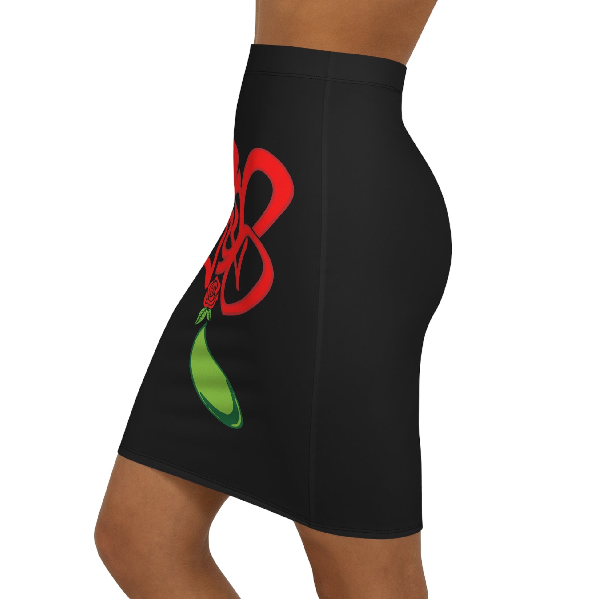Edgy Floral Print Pencil Skirt - Women's Mid-Waist Skirt for Chic Outfits, Date Nights, Parties, Everyday Wear, Gift Idea