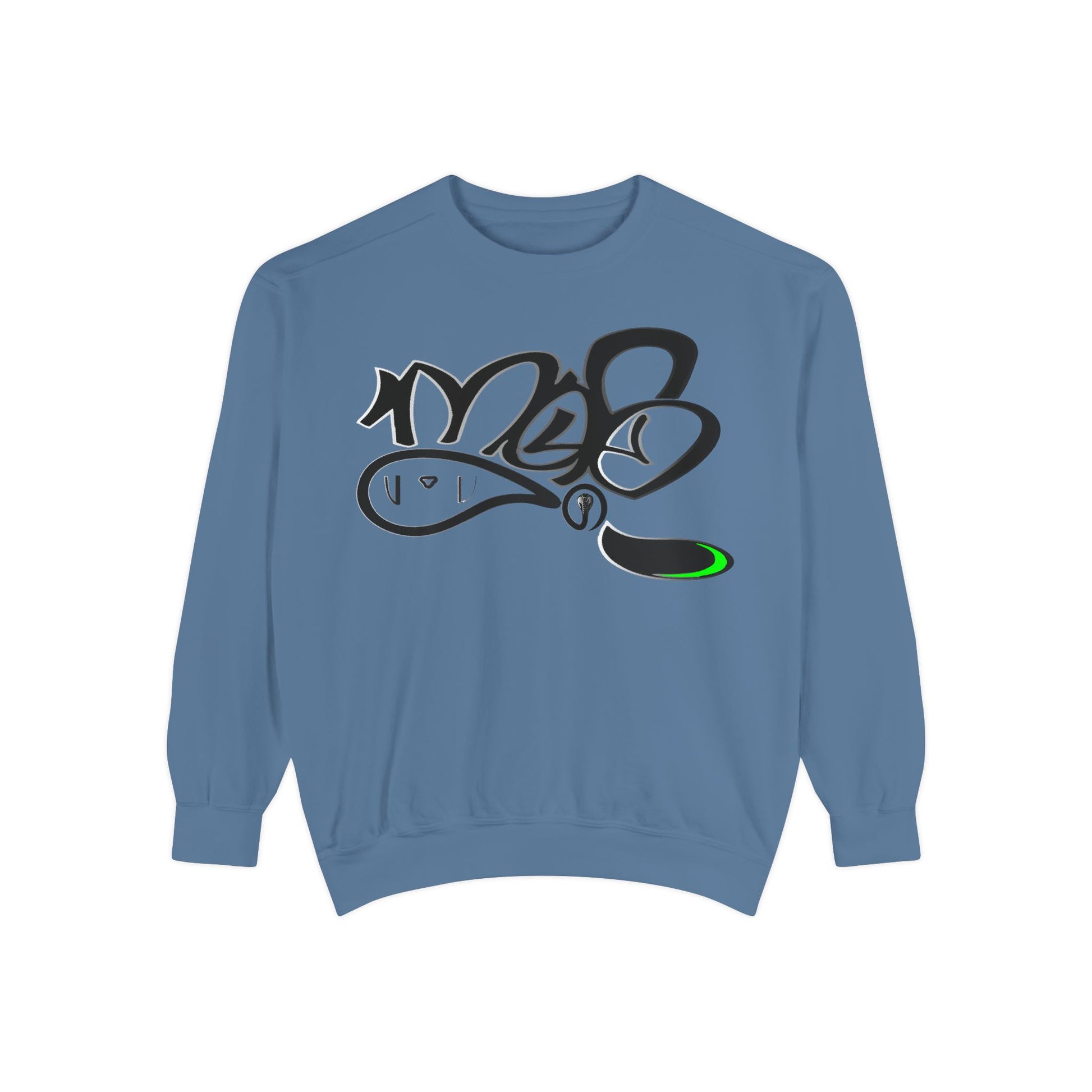 This relaxed-fit sweatshirt brings laid-back street energy to your everyday rotation. The soft, medium-heavy ring-spun cotton blend feels substantial without being stiff, and the garment-dyed finish gives it a lived-in, slightly vintage look that pairs effortlessly with jeans or layered over a tee. A bold, graffiti-inspired graphic on the chest adds urban character while a subtle pop of neon green highlights the design — small, confident detail that catches the eye. Practical touches like ribbed collar, cuffs and hem, neck twill for comfort, and a half-moon back patch keep the sweatshirt feeling sturdy and comfortable wear after wear. Embroidery options on the chest let you elevate the piece with tactile detail. Wear it for city nights, cool-morning coffee runs, or chill studio hangs — it settles into your routine and makes the everyday feel intentional.