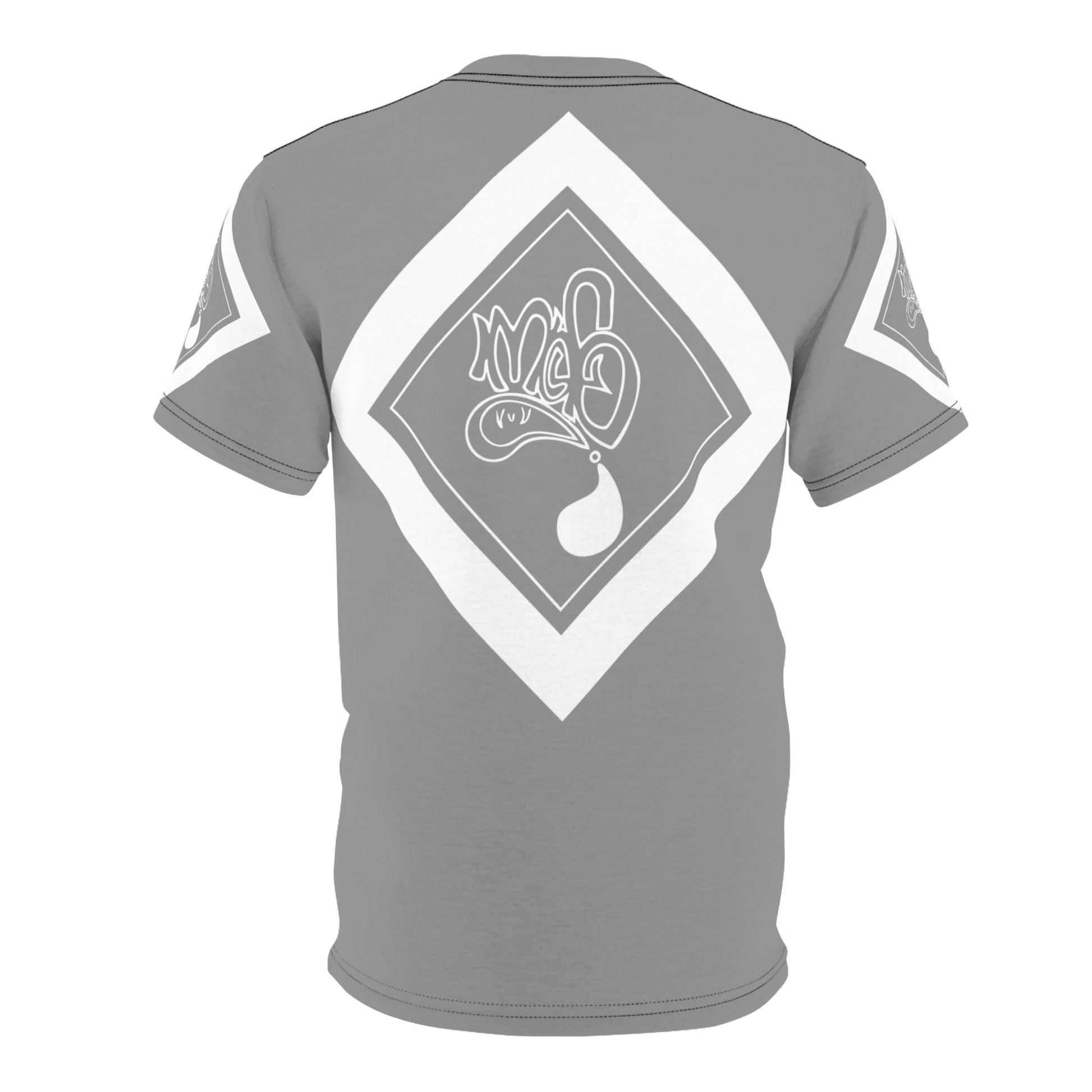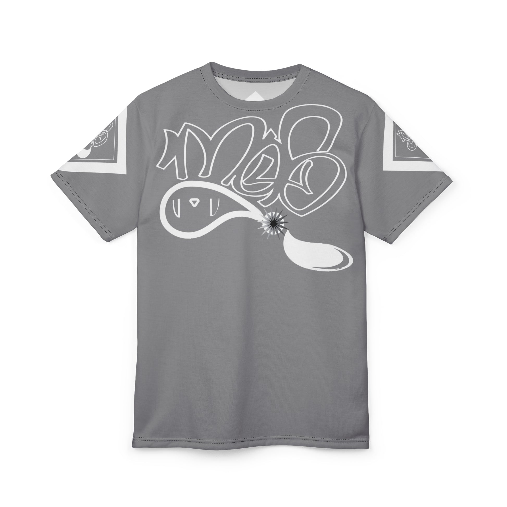 A soft, all-over printed tee that reads like a personal emblem — muted gray canvas with bold white graffiti-style lettering and a small sunburst bloom near the hem. It feels like a quiet street moment: worn-in concrete, flattened sneakers, a nod to late-night skate sessions and tucked-away creative hangouts. The regular cut sits close enough to layer under a flannel or wear solo with high-waisted jeans. For someone who collects small urban rituals — rooftop coffees, cassette swaps, and sunrise walks — this shirt becomes part of the ritual, not just clothing. The tagless neck, ribbed collar, and reinforced shoulder tape keep the lines clean after many wears. Pick the lighter or heavier fabric weight depending on whether you want a drapey tee for warm evenings or a sturdier feel for cooler days.
