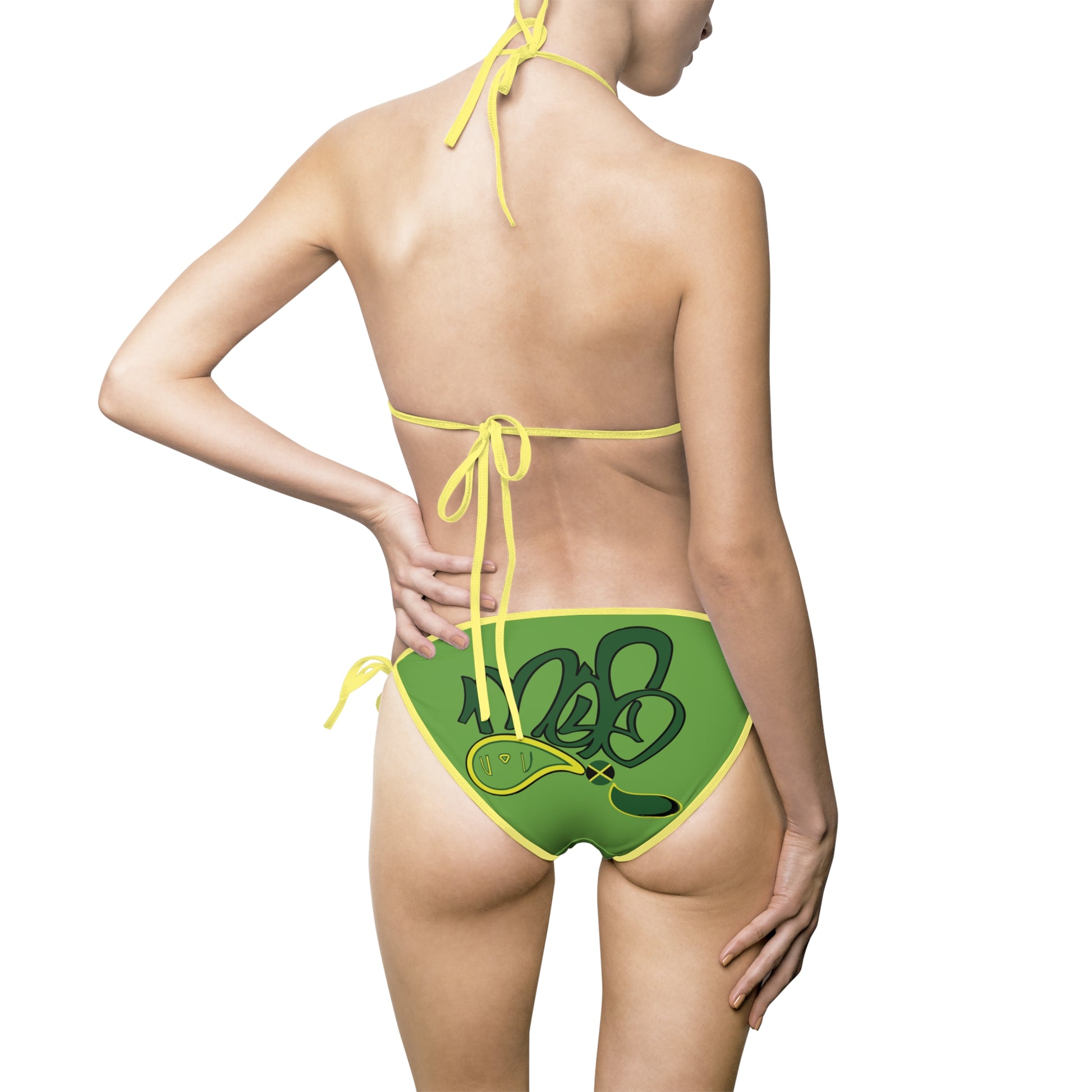 This lightweight two-piece swimsuit brings playful, nature-inspired energy to beach days and poolside lounging. The soft, stretchy blend moves with you — swim, stretch, and sunbathe without restriction — while removable padded inserts give subtle shaping and customizable coverage. Bright, fade-resistant printing keeps the rich green and black motif vivid through seasons of wear. Adjustable tie straps let you tailor the fit, and a sewn-in label keeps the silhouette clean. Wear it for relaxed afternoons by the shore or spontaneous weekend getaways when you want comfortable support with a bold, botanical vibe.