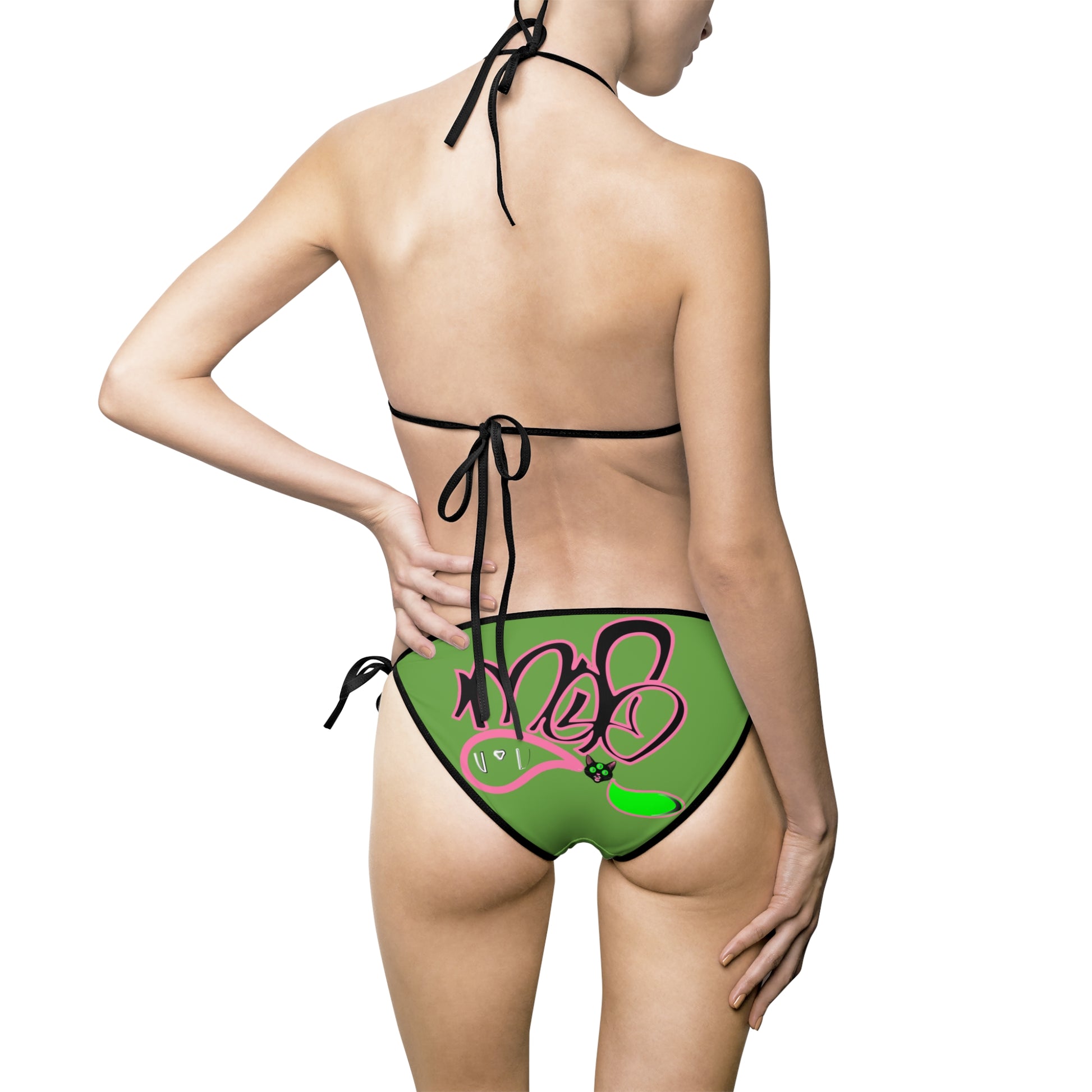 3eyed black cat mofo logo diamond combo bikini green